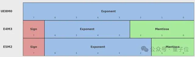 E和M则分别表示指数位和尾数位分配到的bit数,E8M0指的就是8个bit全都分配给了指数位。